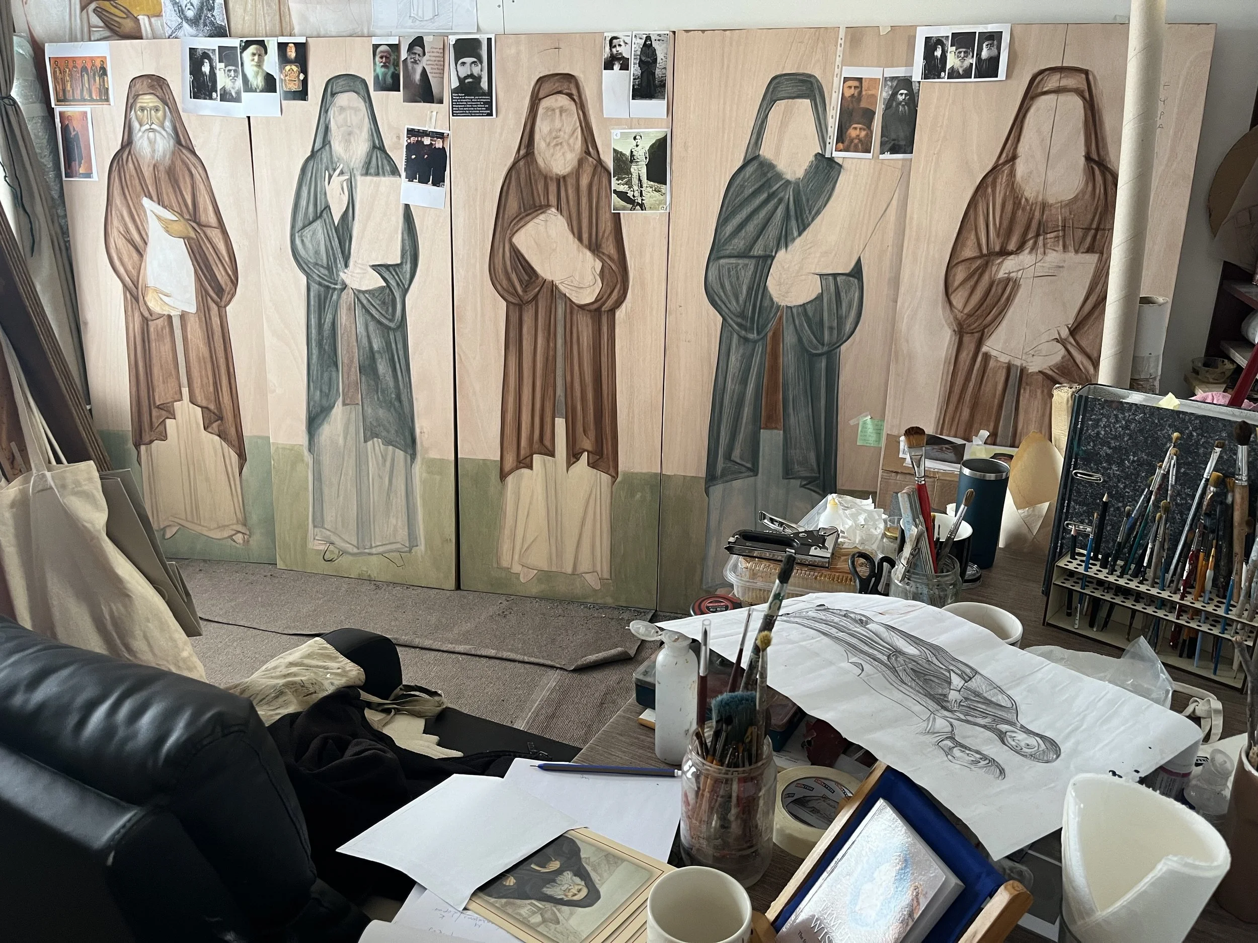 The Monastery workshop produces large, hand-painted canvases for churches and iconostasis, custom, hand-painted iconography, as well as original mounted icon prints and handmade decorations available for sale through the monastery giftshop.